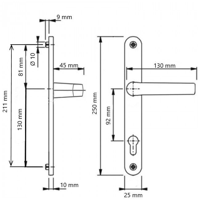 Maner din aluminiu cu arc pentru usa PVC, model Deniz, interax 92mm, latime sild 25 mm, culoare Alb.